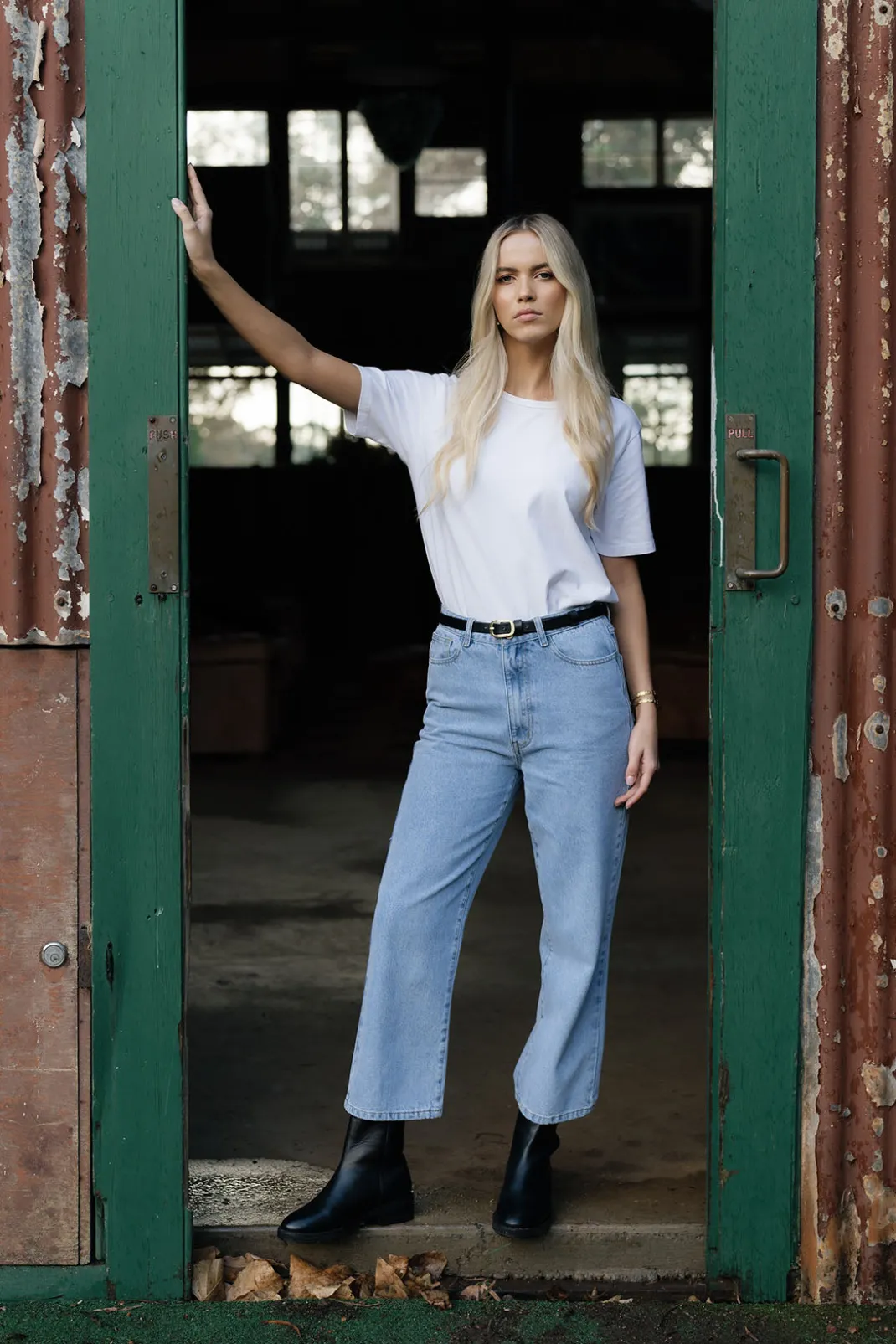 Sorry guys skinny jeans are dying – it’s time to move on… or try something new! We have designed a jean fit for comfort and style. A versatile piece that will mix and match with all your wardrobe staples. The straight cut offers easy fitting (unless your very curvy – it may not suit) and is designed to be worn with a belt if you need to pull the waist in a little. They are not super high or tight in fit – in fact size up if you want a looser fit and cinch with the belt or wear them lower on the hip. They look great with sneakers or a heel.