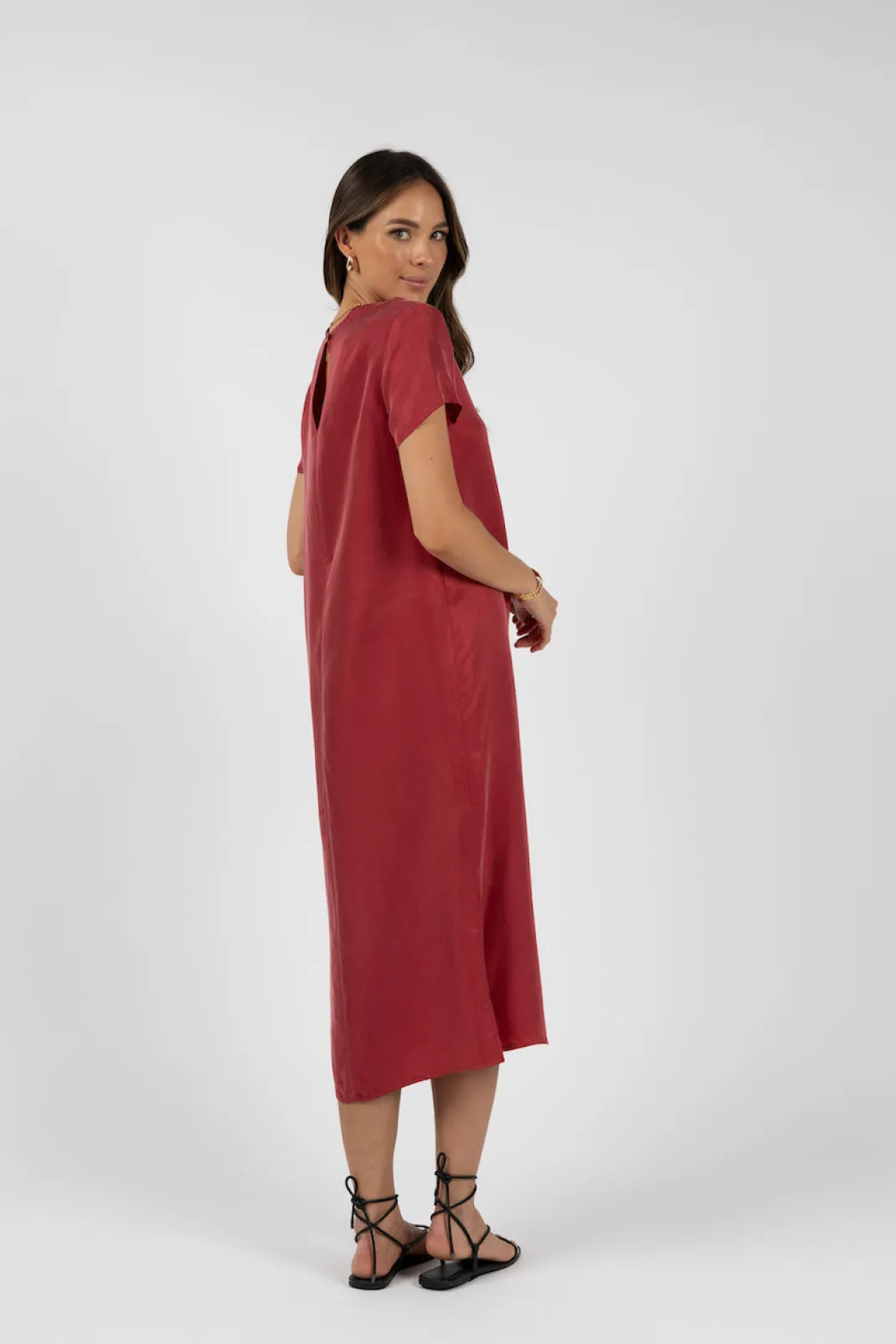 Elevate your summer wardrobe with our Cupro Collection. The unique texture of our Cupro fabric has a soft feel and velvety touch, bringing an effortless classiness to every piece. The Milano Tee Dress is a simple, yet stylish t-shirt style dress elevated by the beautiful fabric.