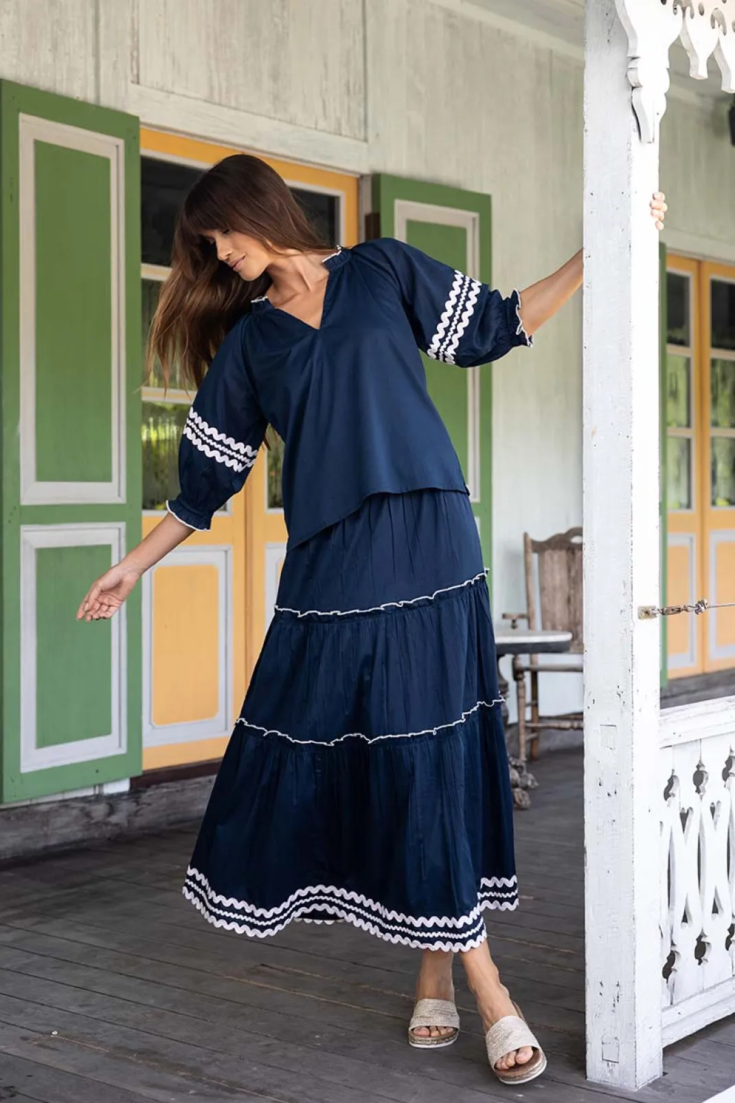 - Lightweight, flowy skirt with stunning Zig-Zag cotton feature trim.
