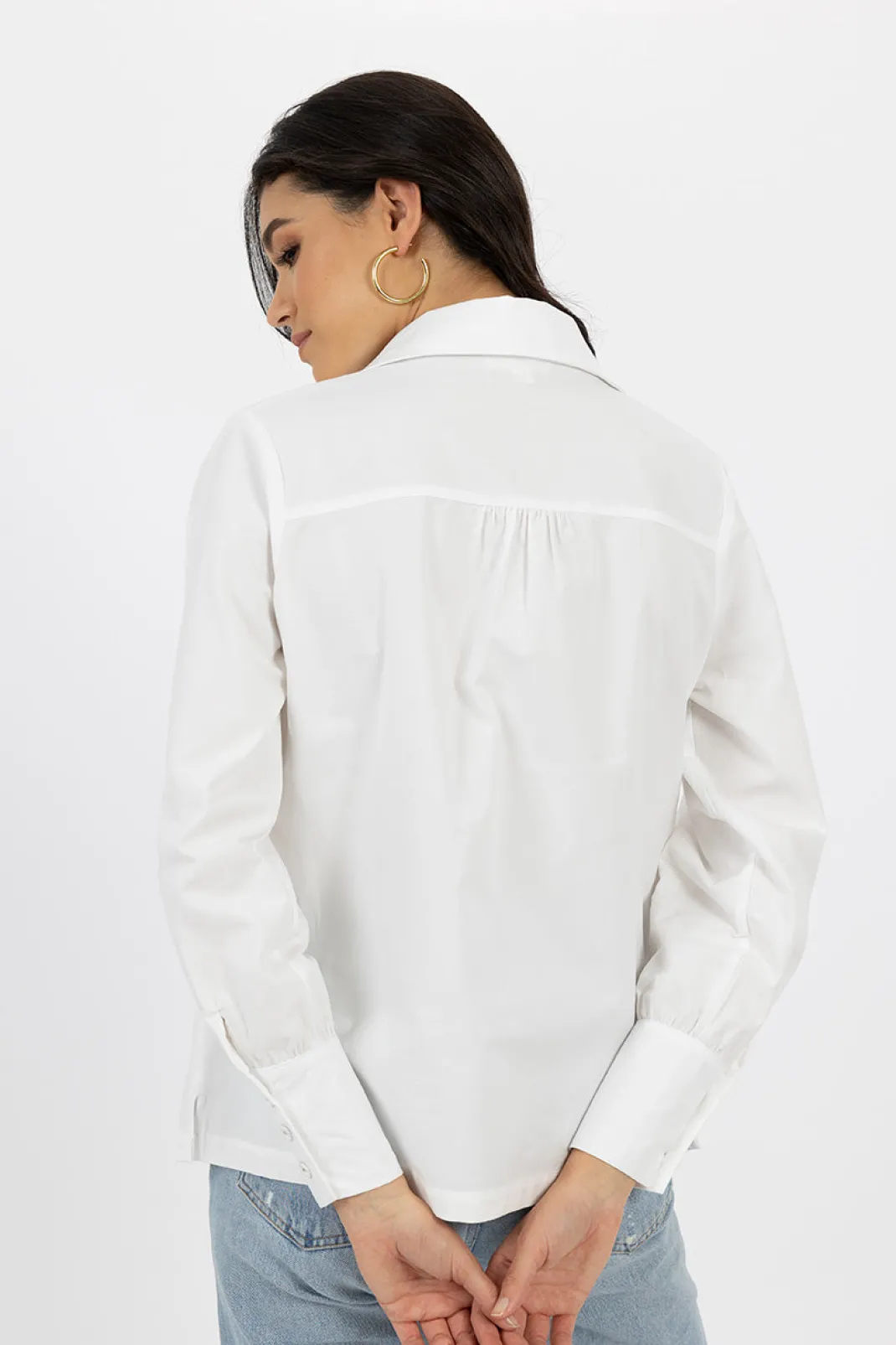 - Elongated cuffs with button closure.