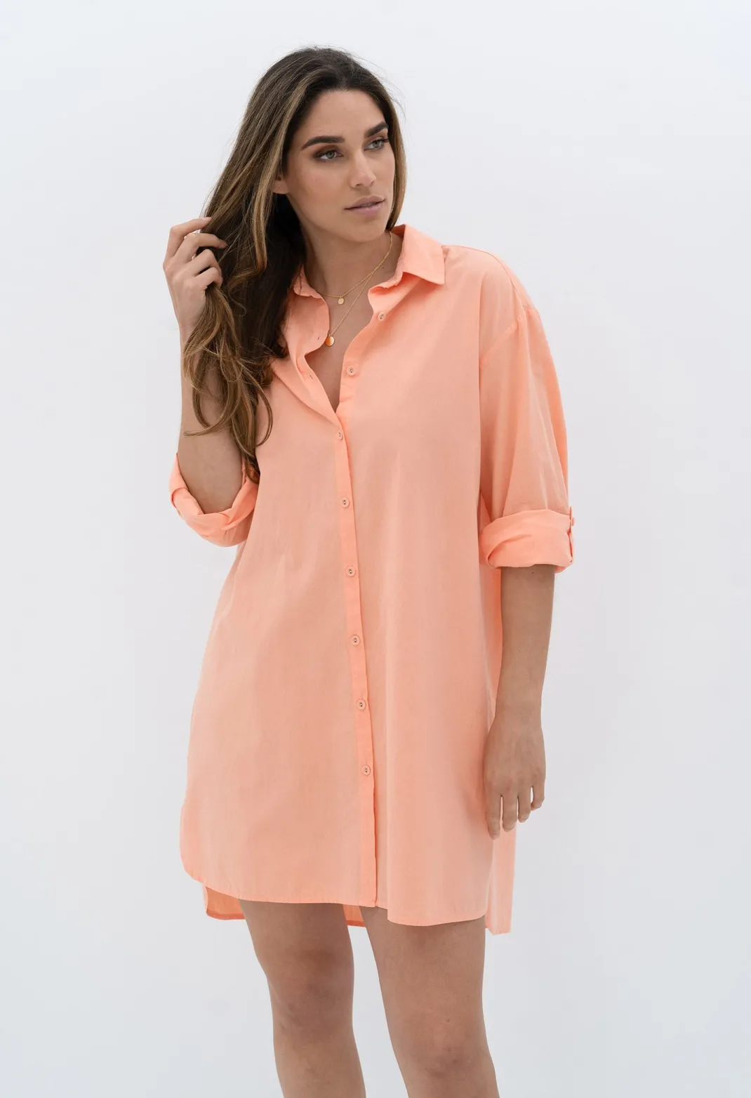 - Full-length sleeves with split and button at cuff – roll the sleeves up or wear down..