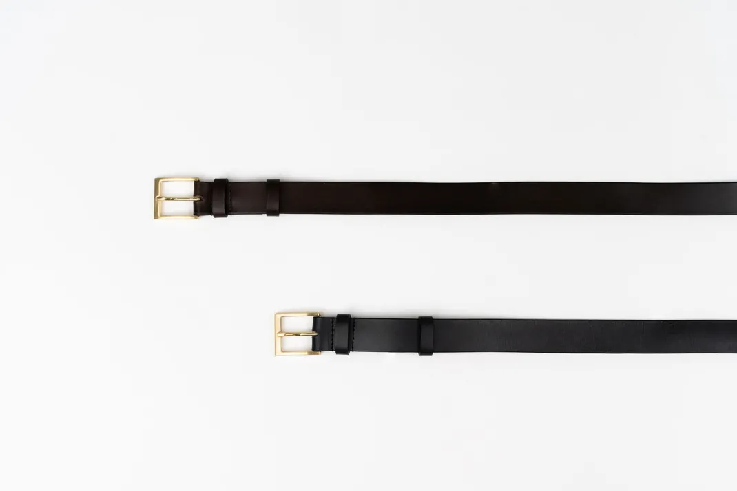 A timeless belt crafted with 100% smooth leather, double leather keeper and rounded brass buckle.