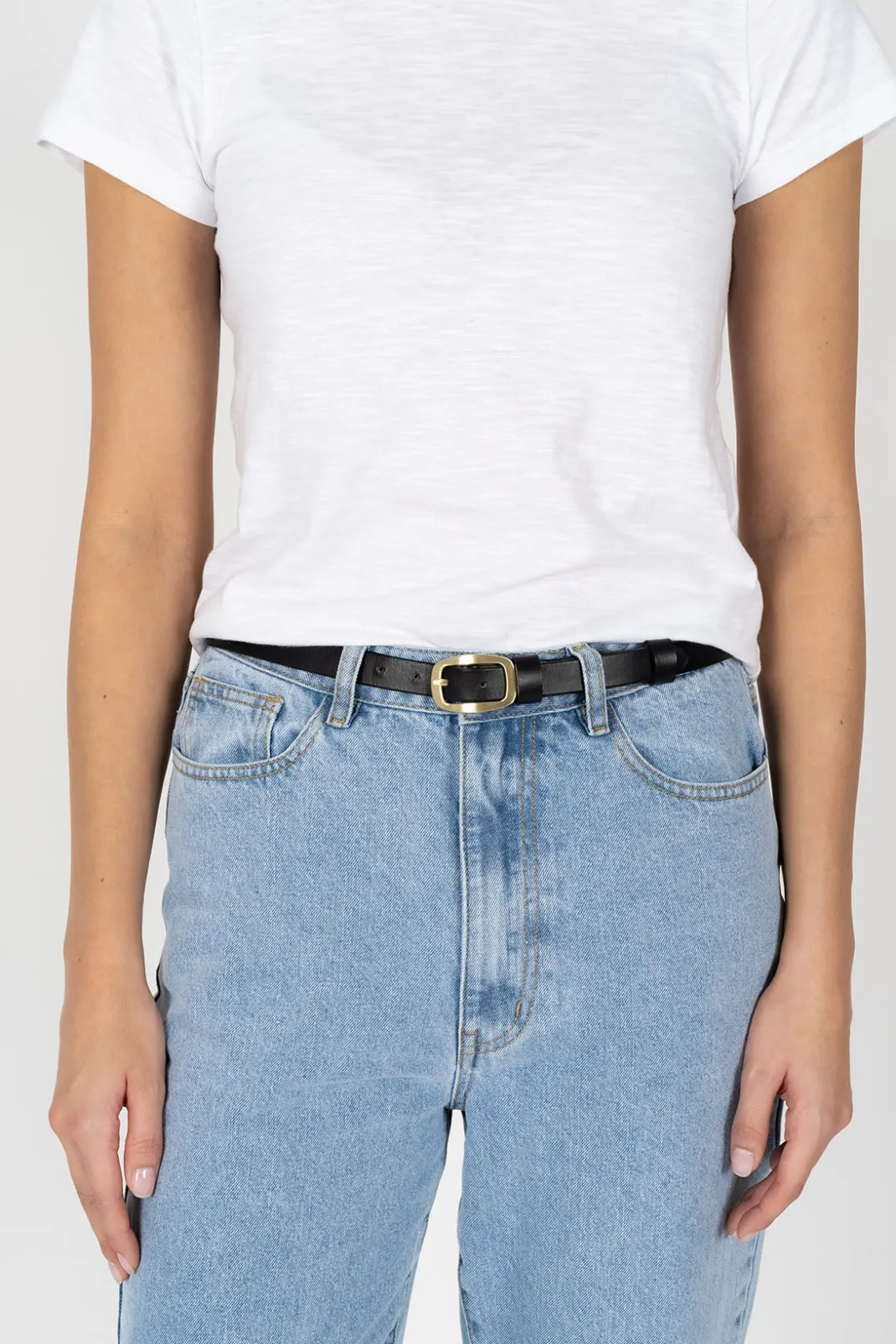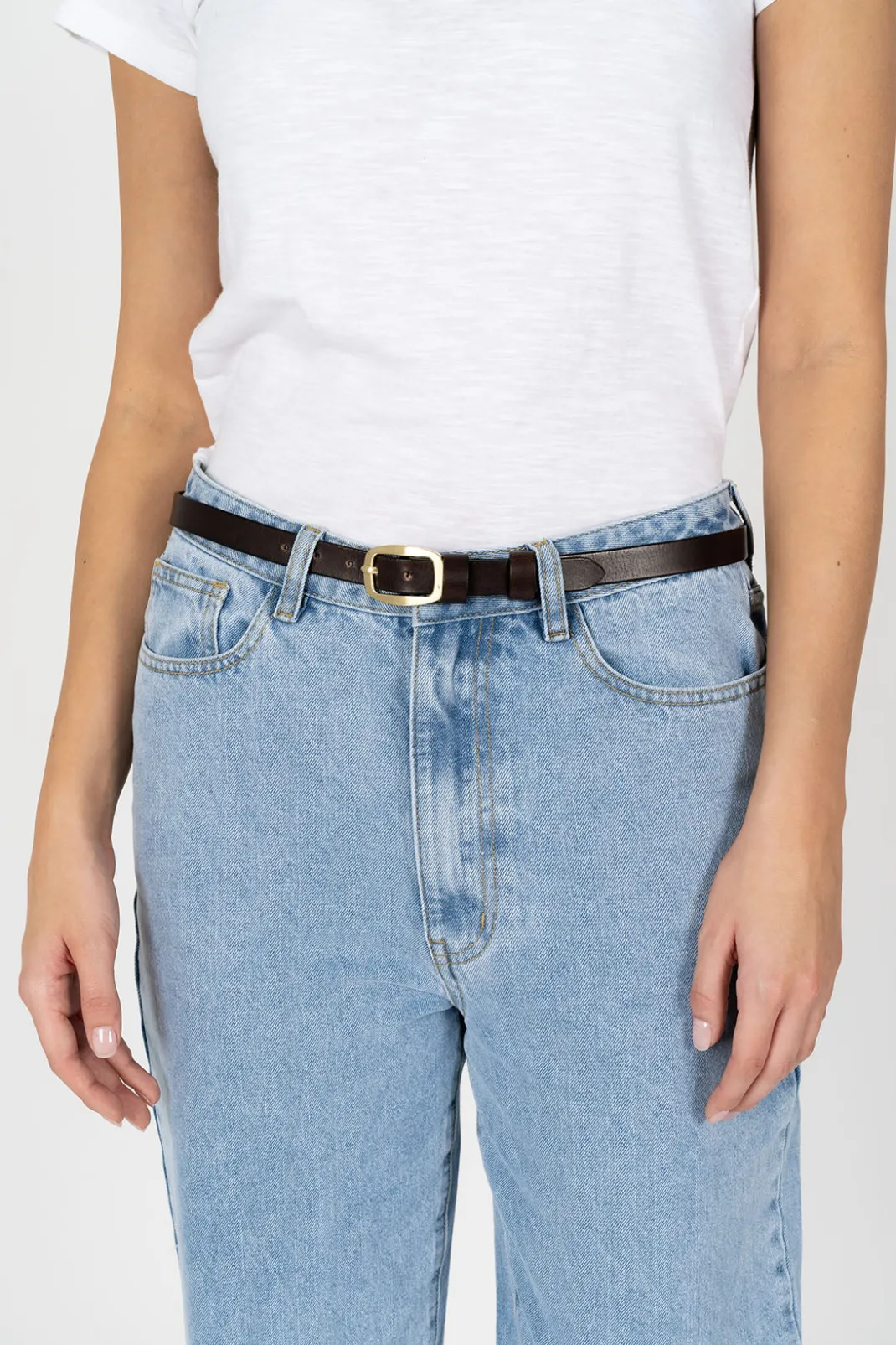 A timeless belt crafted with 100% smooth leather, double leather keeper and rounded brass buckle.