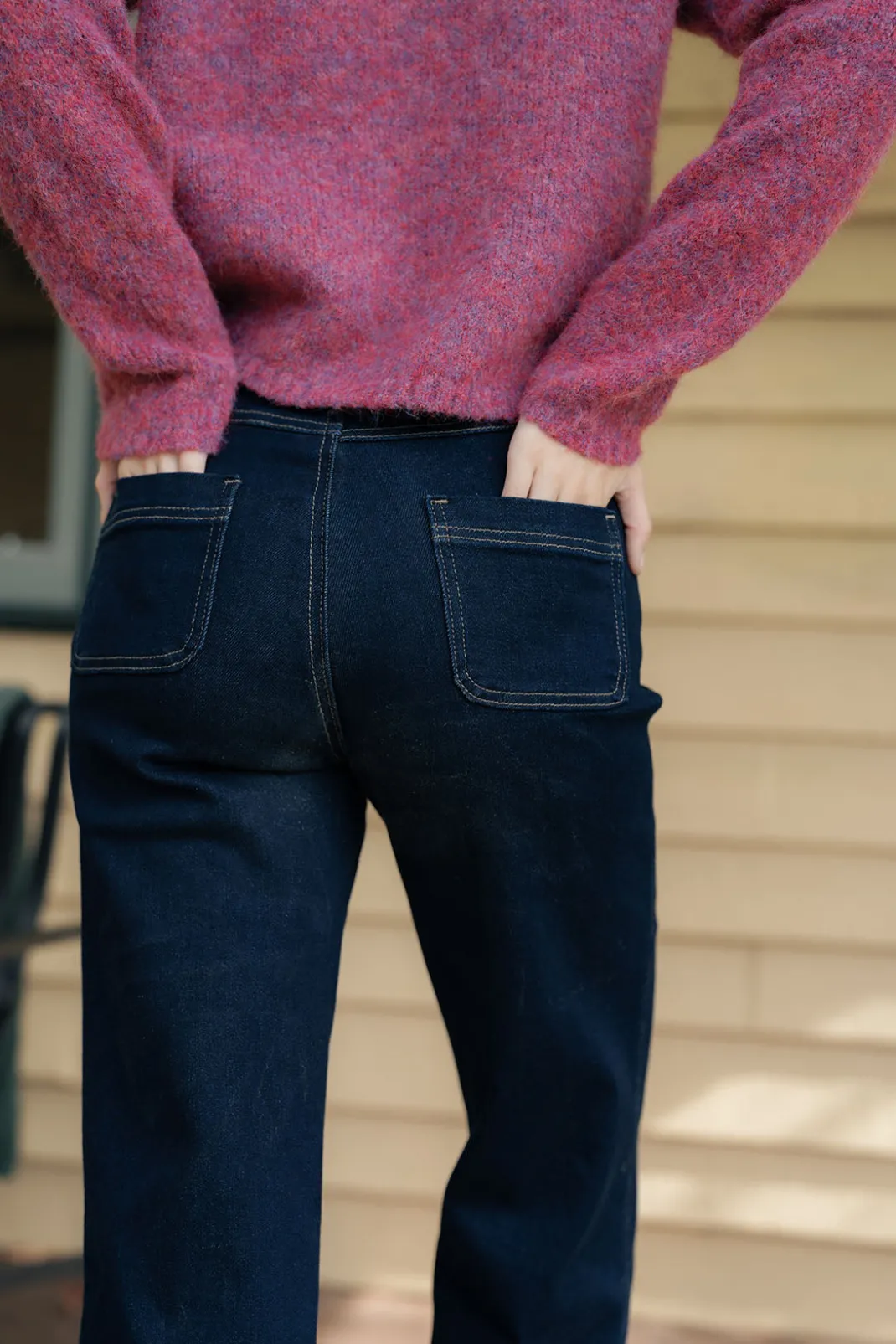 Our bestselling jean is back – with a slightly different fit, new zips and an extra press stud. We have added an extra press stud at the top of the fly opening to secure this in place. This 70’s inspired pant is crafted from a high-quality denim with a generous amount of stretch – crazy comfortable and a super flattering fit. What more could you want? Pair with our Nellie Cardi for a cute and comfy weekend look.
