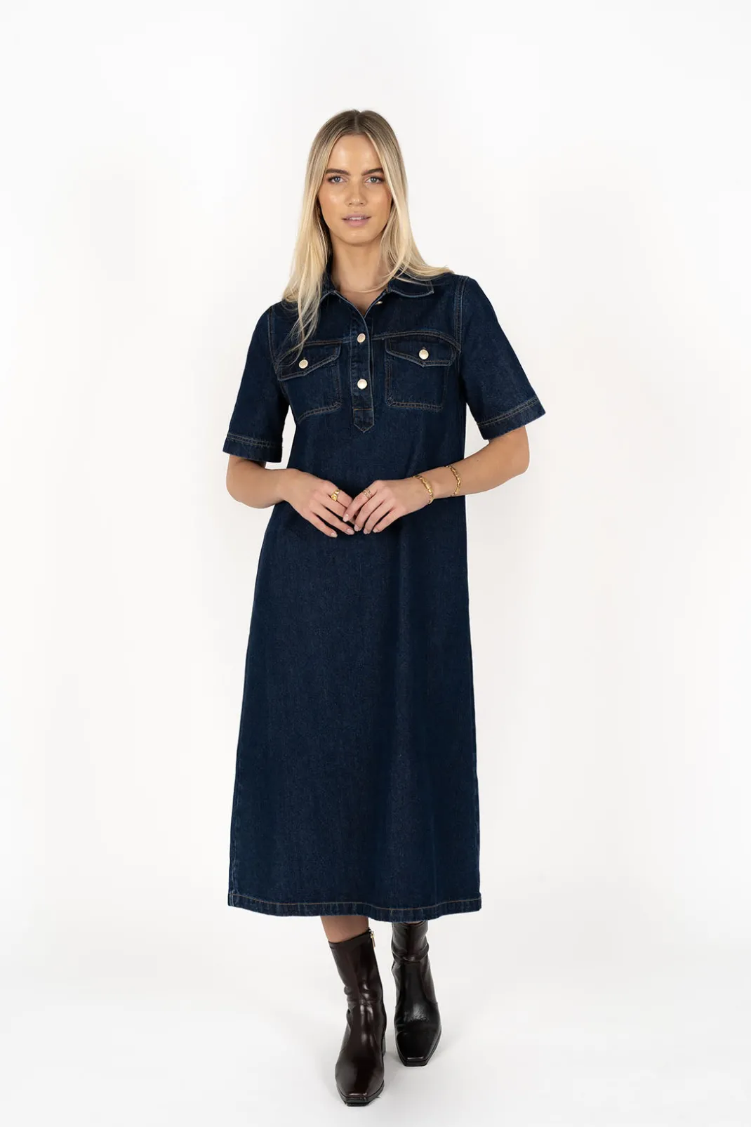 Our Amici dress is the perfect blend of comfort and chic and will be this winter’s most sought-after denim dress. Crafted from mid-weight denim – a perfect trans-seasonal piece that you will wear and wear. Team with your favourite sneakers for a casual vibe in the earlier part of the season and then layer her up with a skivvy, boots and scarf in the colder months. This dress is the best!