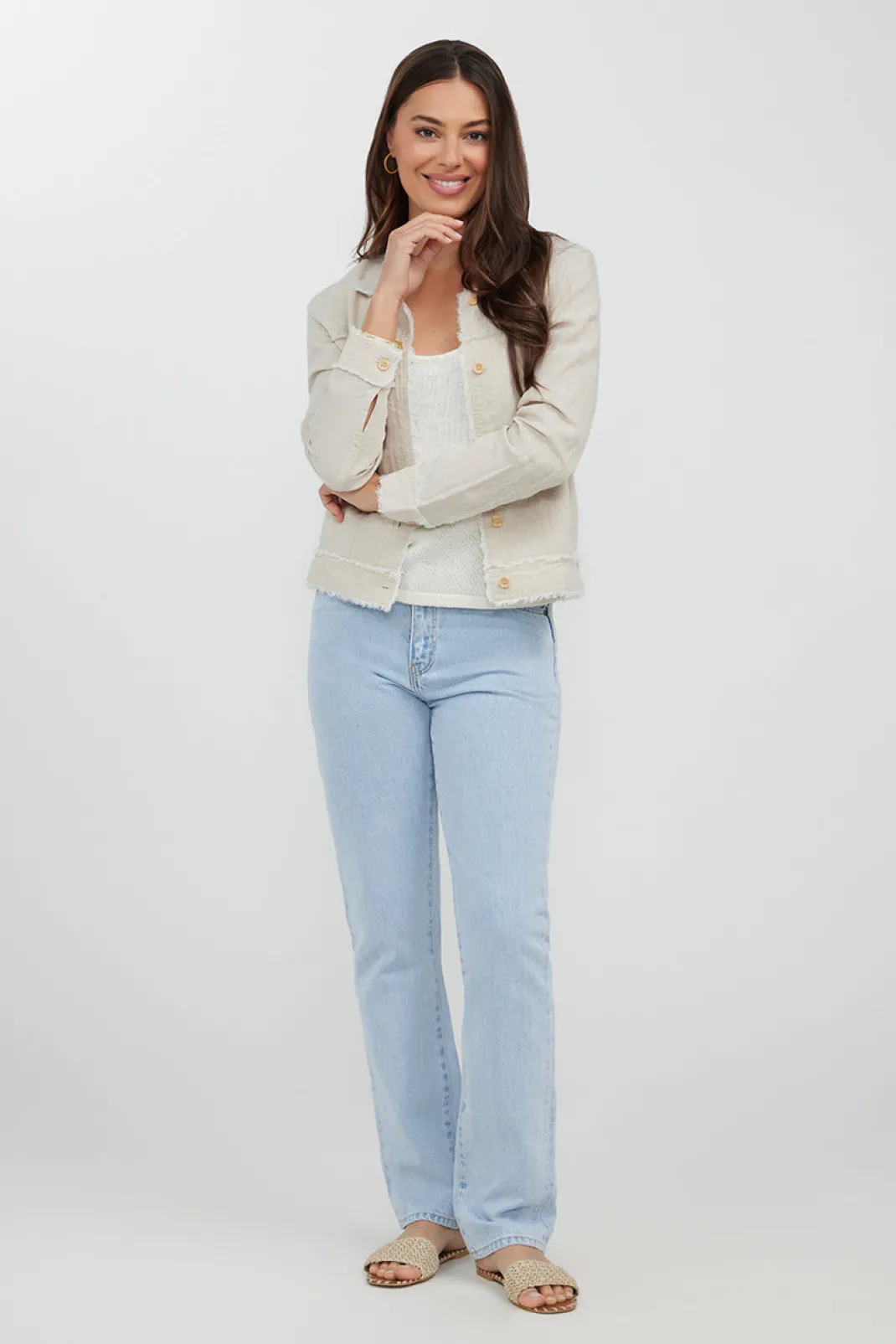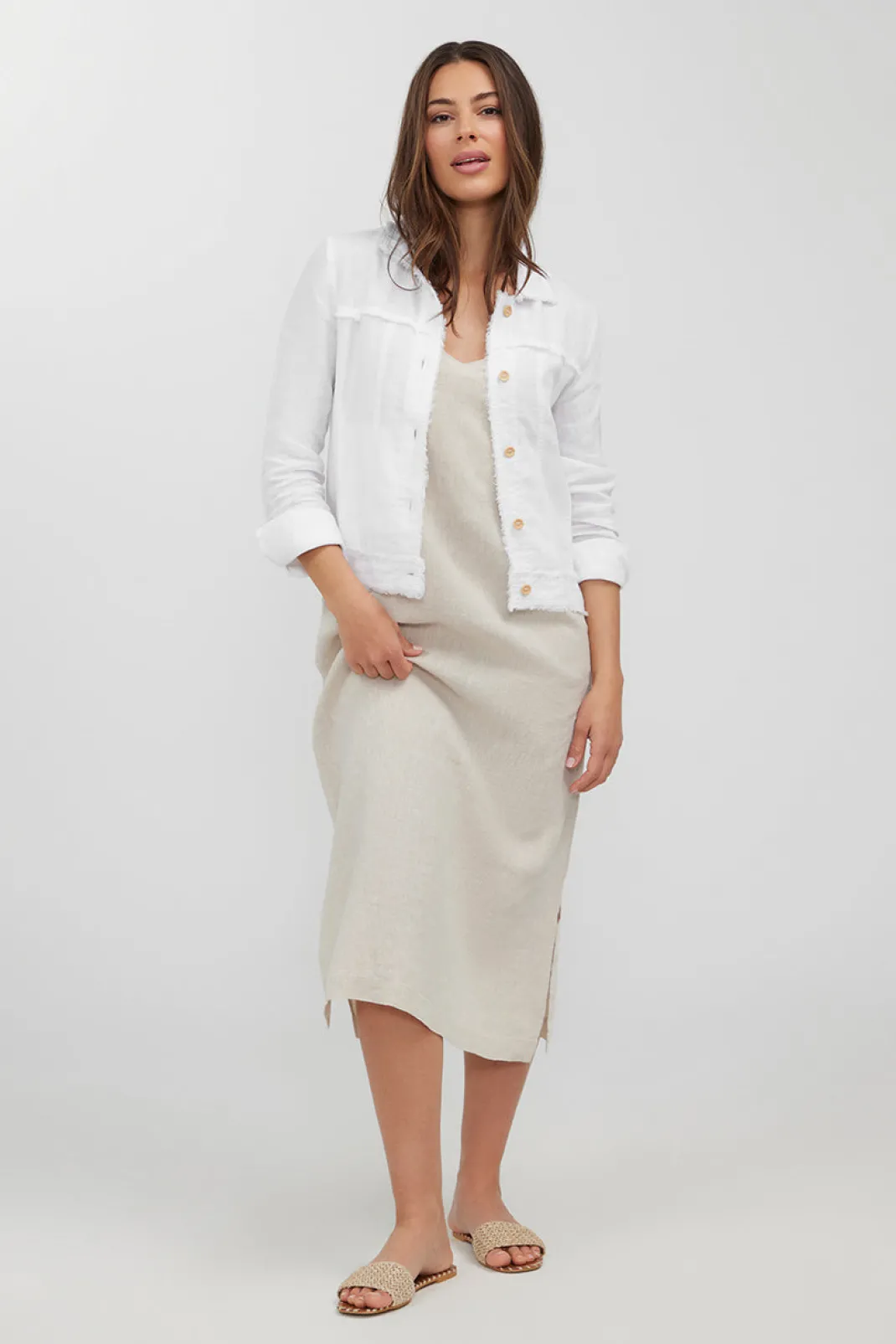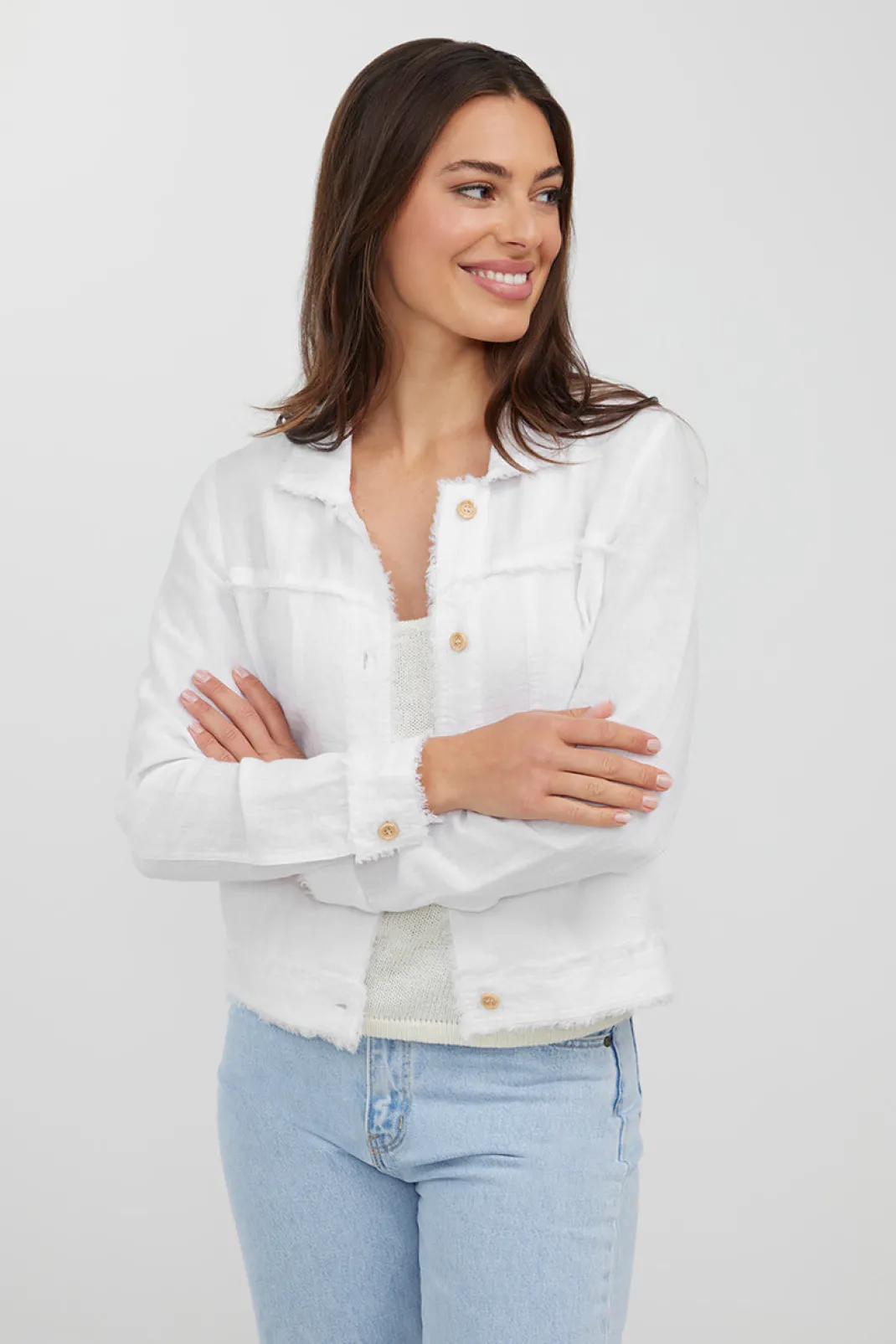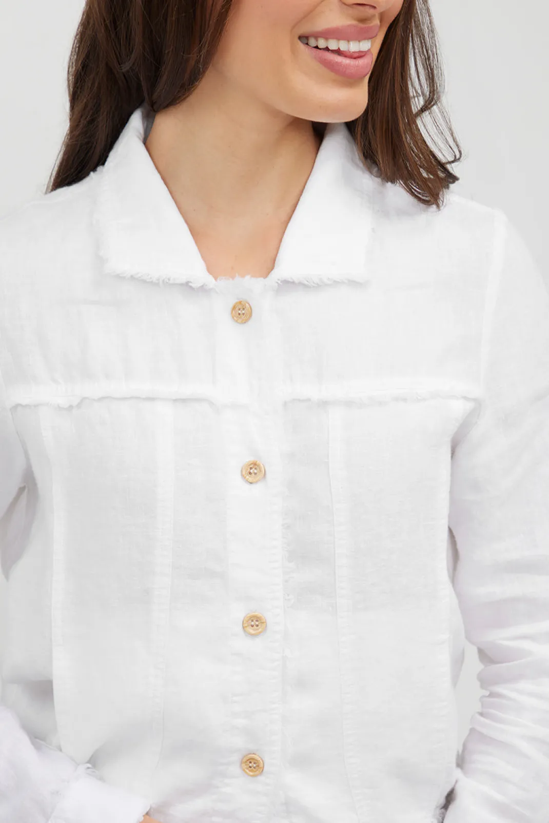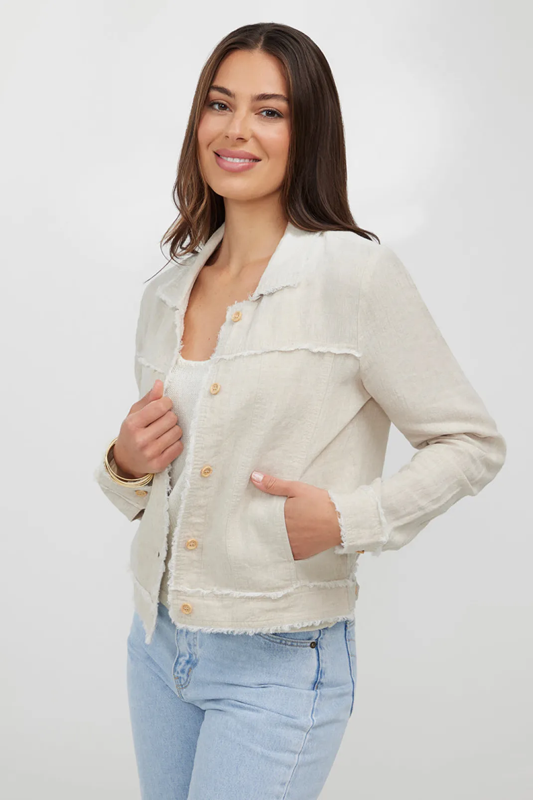 Made from 100% linen, this jacket is soft, breathable and features a frayed edge detail throughout. Wear casually with your favourite Humidity pants or throw over your summer dress on cooler evenings.