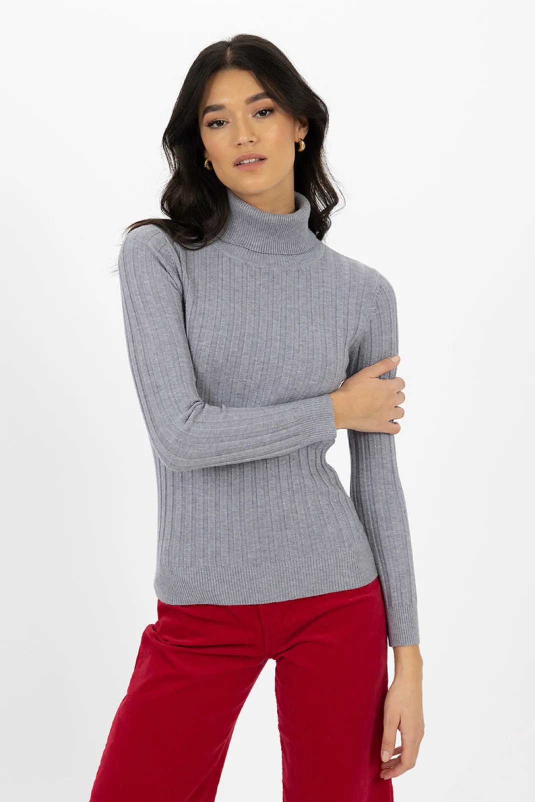 - Delicate ribbed detail on roll neck, cuff, and hem.