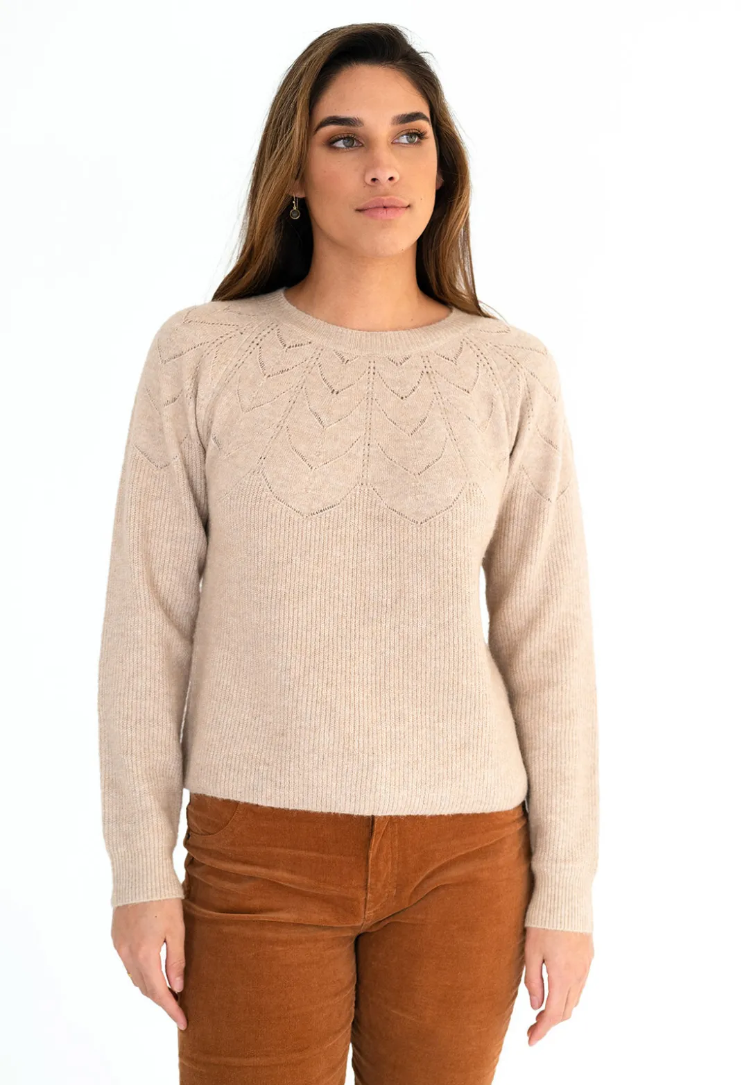 The Camille Jumper is a soft, lightweight jumper with a classy, unique touch. The knitted detailing around the neckline and shoulders elevates this basic jumper into an elegant piece perfect for office and everyday wear. The wool blend is soft against the skin and keeps you warm and huggable.