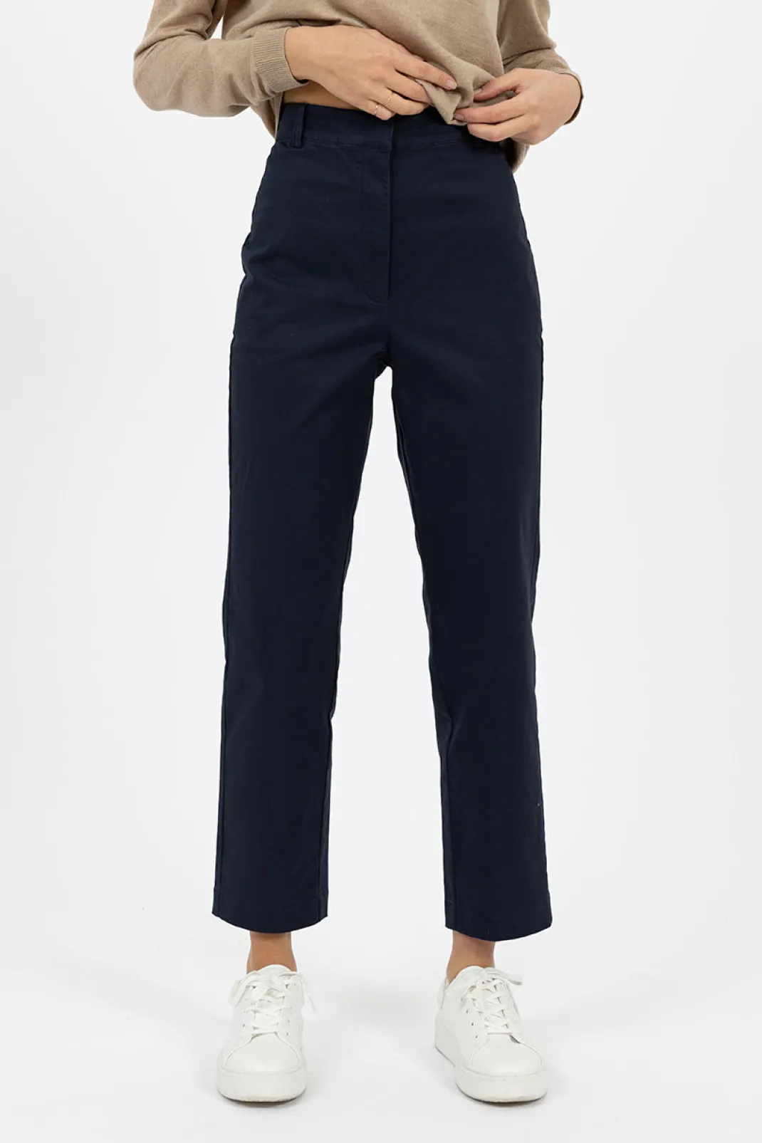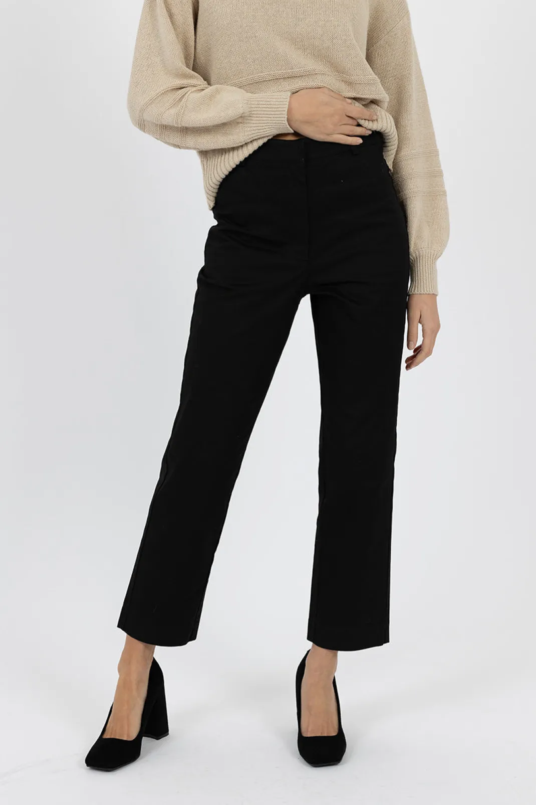 - High-waisted, slightly relaxed and straight leg.