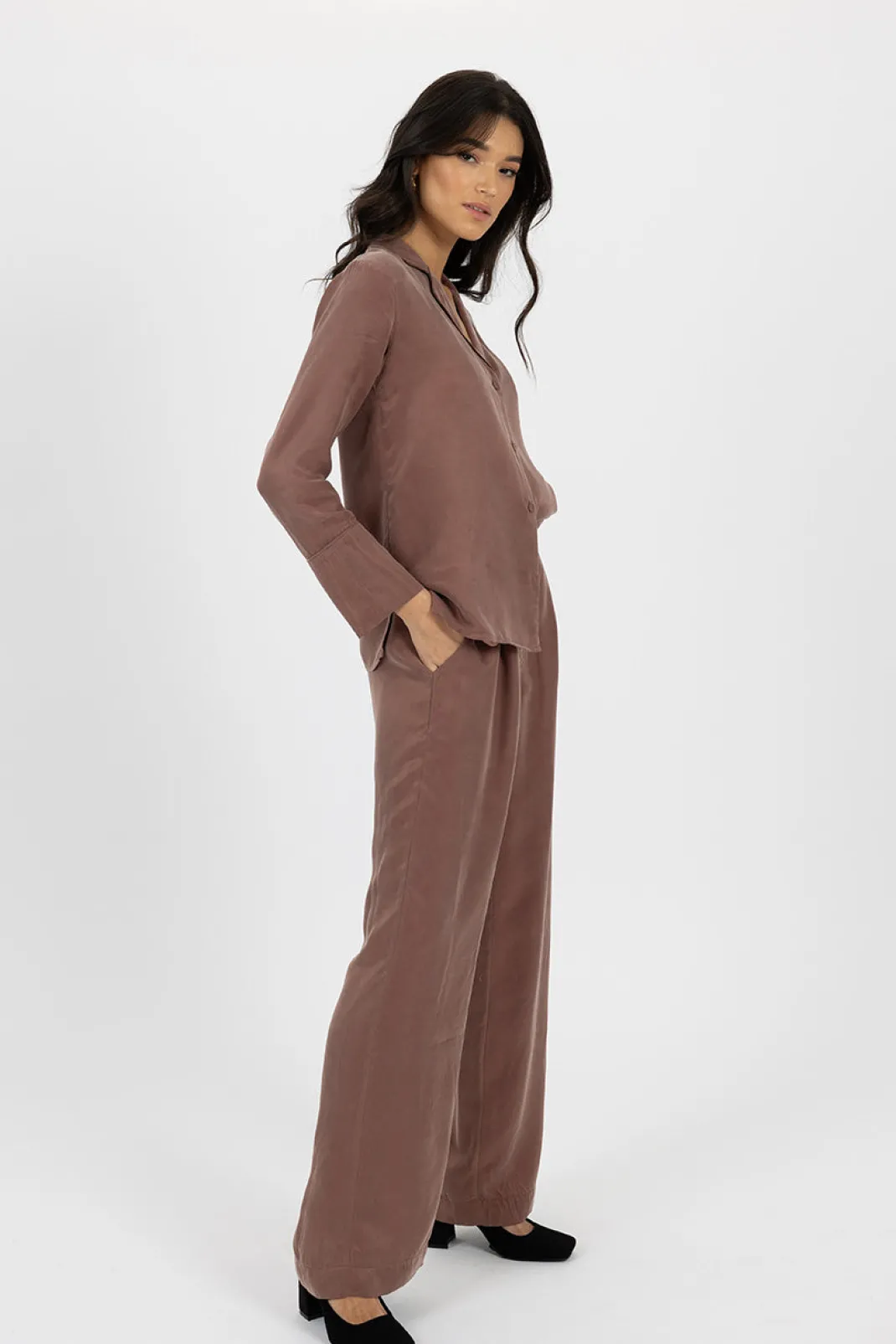 - High-waisted tailored pant made from our new cupro blend.
