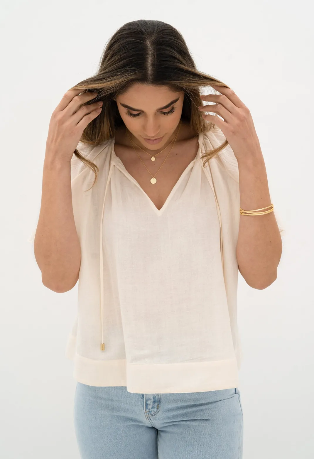 - A soft, floaty feminine summer blouse.